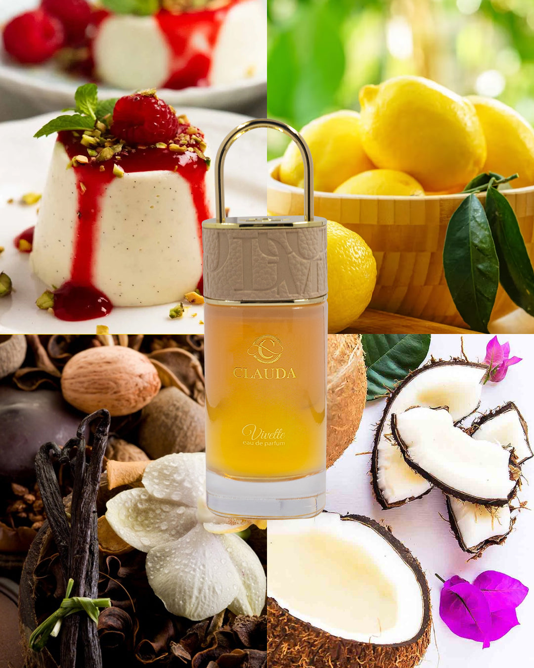 Clauda Vivette: A sophisticated beige composition that masterfully balances sweetness with refinement. This fragrance captures the tranquil essence of golden hour illumination—delivering an elegant olfactory experience that proves irresistibly compelling with each application.