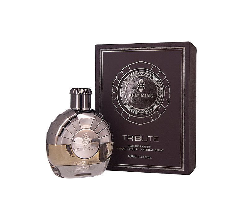Per King Tribute is a powerful and captivating fragrance that blends citrus, fruity, floral, and spicy notes. The top notes of citrus, violet, and saffron create a fresh and inviting opening. The heart features leather, patchouli,