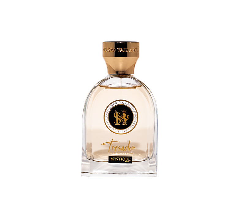 Mystique opens with the sparkle of bergamot, cardamom, and pear — a citrus-spiced freshness that flows into the creamy richness of iris and sandalwood. The base reveals warm cedarwood, sweet vanilla, and earthy vetiver, enveloping the wearer in an aura of quiet confidence and modern elegance.